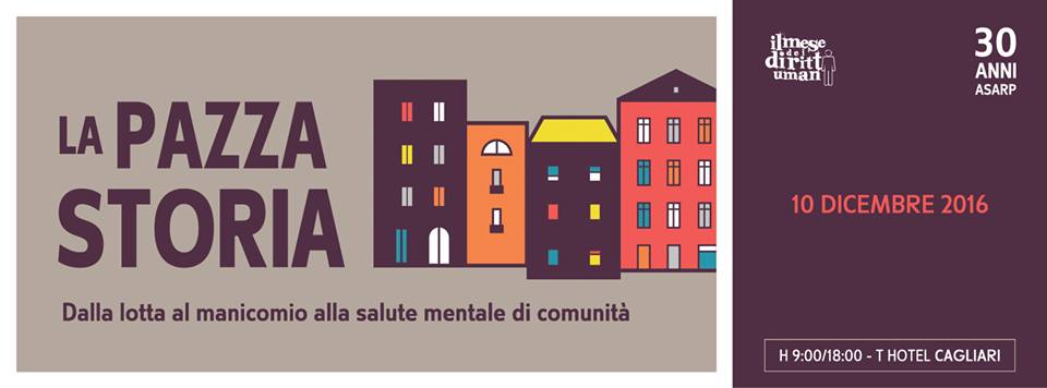 Sabato 10 dicembre nella Sala meeting T4 – 1° piano del T-Hotel in Via dei Giudicati, a Cagliari dalle ore 9.00 alle ore 18.00 in occasione della conclusione della quinta edizione del Mese dei Diritti Umani si celebra il trentennale della storia dell’Associazione Sarda per l’attuazione della Riforma Psichiatrica con il Convegno “La Pazza storia, dalla lotta al manicomio alla salute mentale di comunità”.